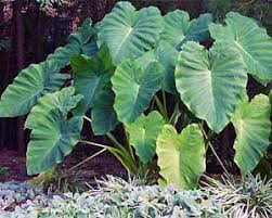 I live in a jungle. Not really an actual jungle, but one I planted in my backyard. And it's completely my fault. You see, I wanted Bali for my birthday, so we made over the backyard, which is really just a patio, into something more tropical. We bought a Buddha statue and candles that hang from a tree, and filled it with flowers and tropical looking plants. We have some ferns and some hostas, and potted geraniums, and we have an elephant. We bought three elephant ears, which apparently are really tarot roots, and are supposed to be about three feet high with rather large leaves. Here is a picture of a normal elephant ear plant.